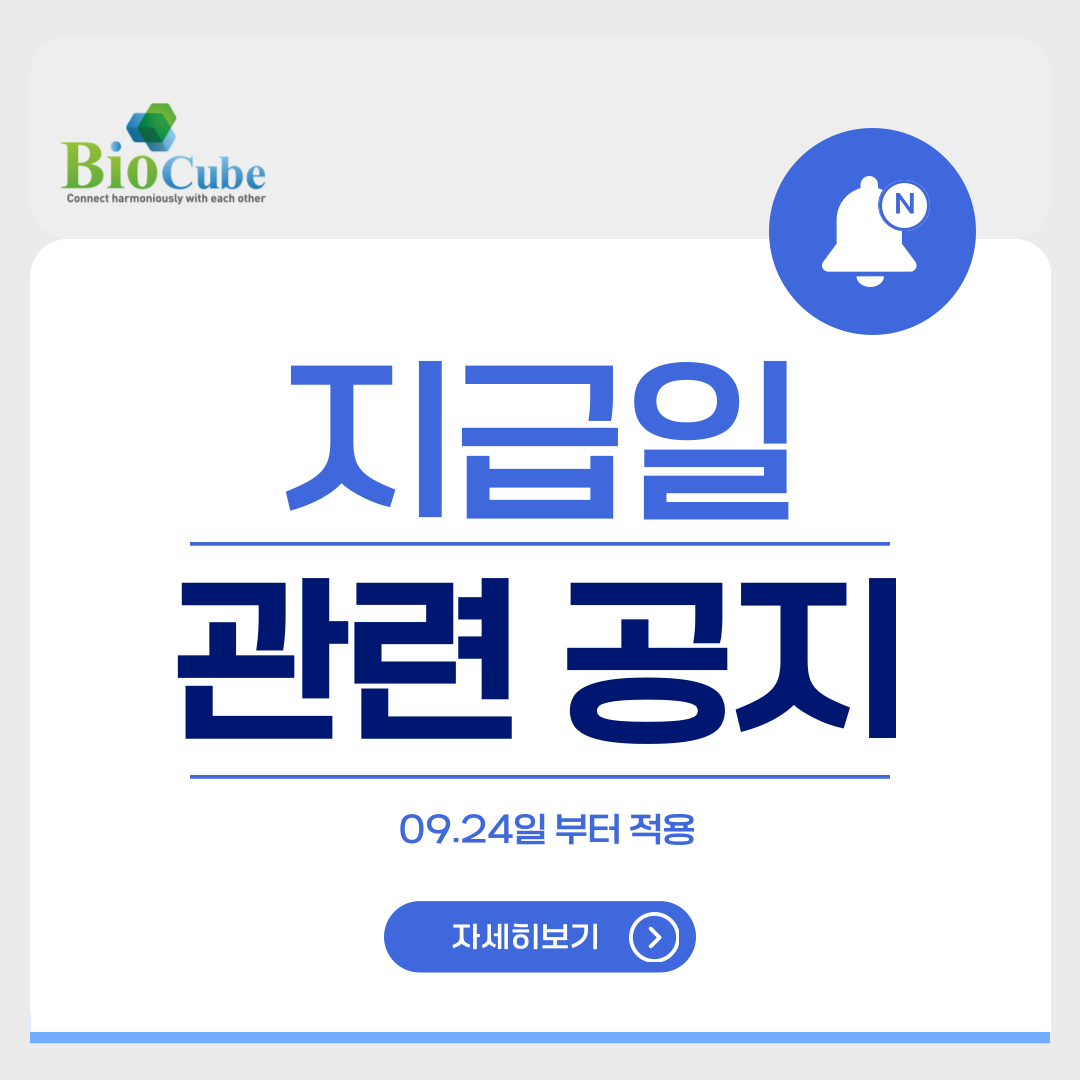 안녕하세요. 바이오큐브입니다. 지급일 관련 변경 공지가 있어 공지드립니다.