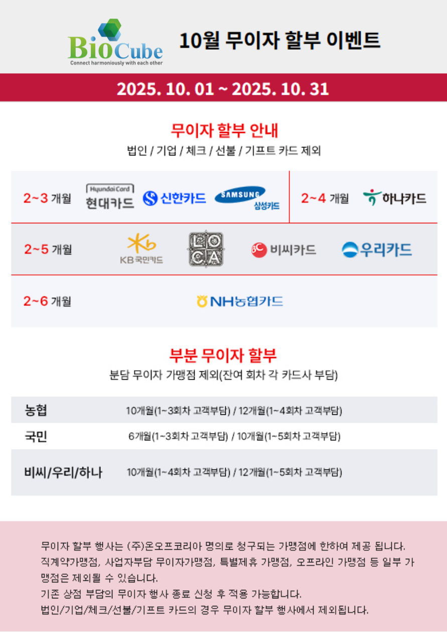 2025년 10월 카드사 무이자 할부 이벤트